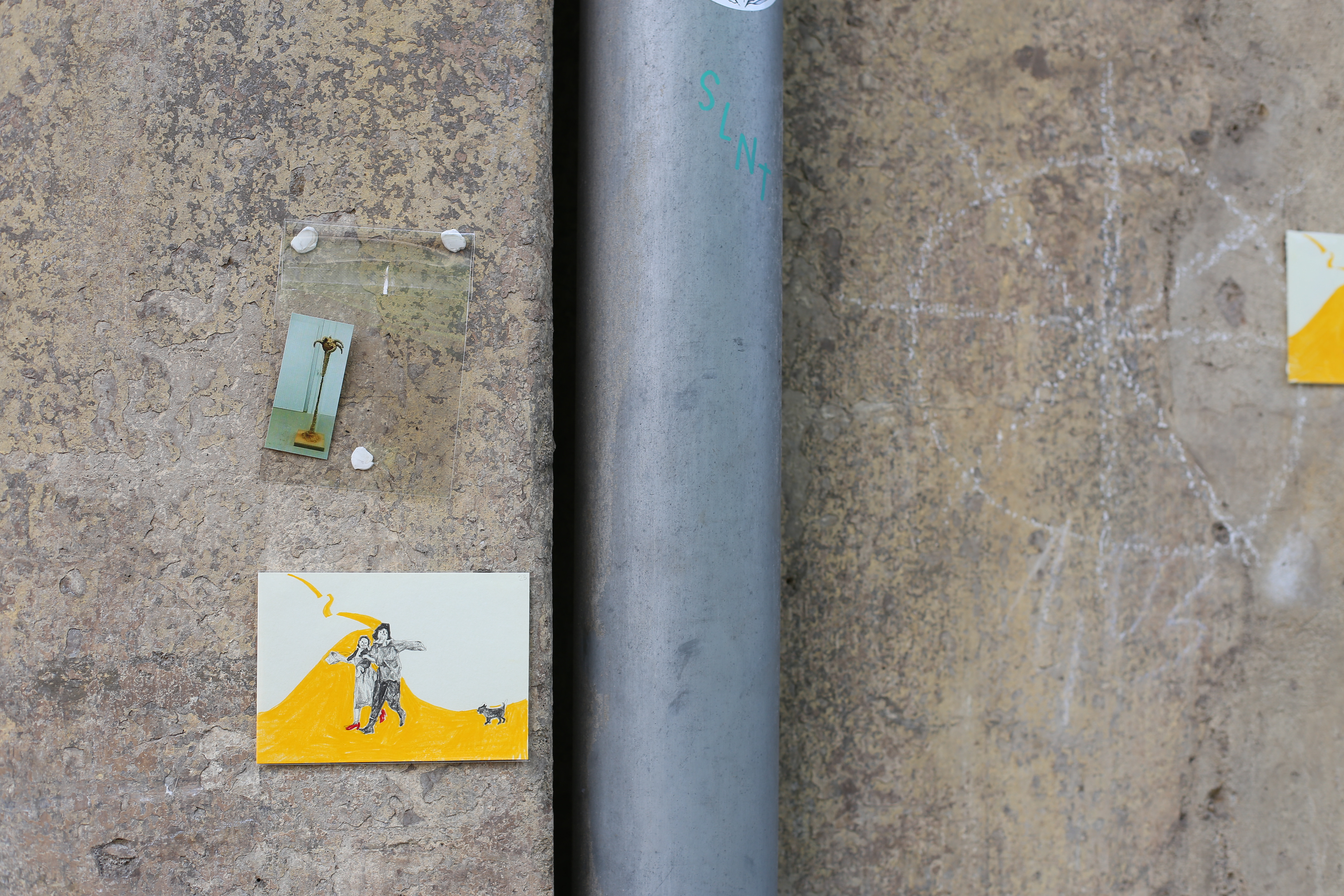 내용 | 4명의 문래동 작가들과 독일의 「Volume V」 교류 전시와 활동이다. 낯선 공간에 떨어진 도로시와 같은 느낌을 담아 <오즈의 마법사>의 장면들을 짧은 드로잉 스톱모션으로 옮겼다. 그들에게는 익숙하고 나에겐 낯선 공간에 작은 드로잉들을 설치하고 구석구석을 둘러보게 한 후 각자의 그림과 나의 드로잉을 교환하는 워크숍을 2차례 진행했다. 다르거나 같은 감정을 서로 교환하는 장치로 드로잉을 활용했고, 작은 그림이 마치 원래 그 곳에 있는 듯 하게 설치하여 평소 인지하고 있지 않은 공간을 들여다 보는 기회를 갖도록 의도했다. 독일에 머무는 동안 학교와 주변 건축물 등에 게릴라로 설치·철수하여 작업이 공간과 작업물이 어울리는 장면을 포착하고자 했다.